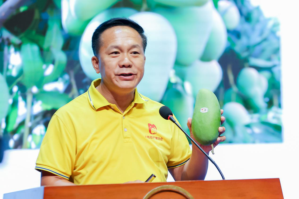 活动现场,百色市芒果协会秘书长、广西百晨农业开发有限公司总经理何承伟走上推介台,向与会嘉宾和采购商介绍百色芒果。他详细讲述了百色芒果的发展历程、不同优质品种的特点与优势。何承伟强调,百色芒果产业坚持规划引领,走规模化发展之路,同时推行“五个统一”,即统一技术标准、统一产品形象、统一质量要求、统一品牌标识、统一品牌营销,以确保芒果品质的一致性和品牌的统一性。百色芒果连续五年入选中国地理标志区域品牌价值评价百强榜,目前位列百强榜第31位,品牌价值111.35亿元。